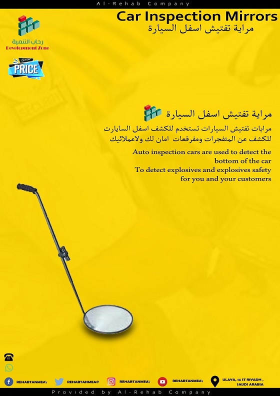 مرايا للكشف أسفل السيارة، مزودة بعجل لسهولة الحركة مع وسيلة اضاءة