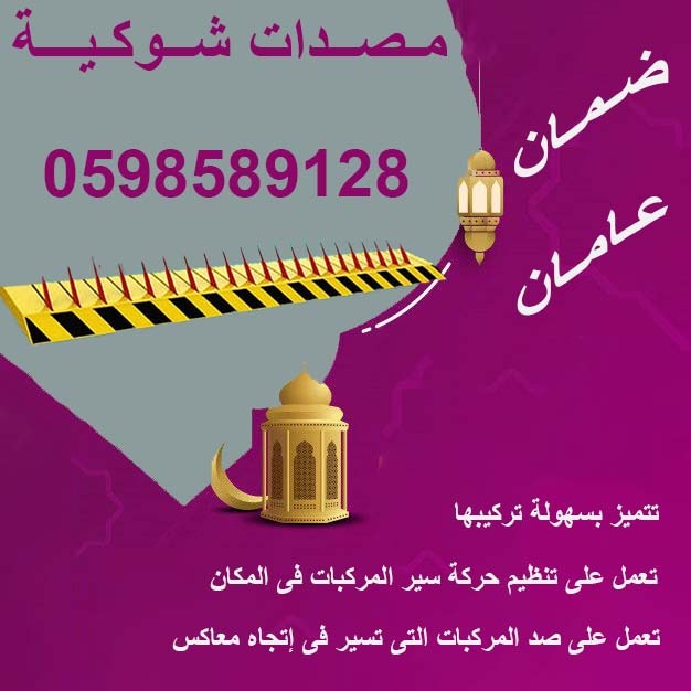 المصدات المرورية الهيدروليكية وحواجز السيارات الشوكية هي واحدة من أعلى أنظمة التحكم، في منع مرور السيارات الغير حاصلة على اذن بالمرور وحاولت الإقتحام خاصية التحكم عن بعد بخاصية الحساس خاصية التحكم عن قرب بجهاز الكنترول الحاجز الشوكي يقوم بتمزيق إطارات السيارة وعلى الفور. المصدات العامودية مصممة لتنظيم الطرق الفرعية والتحكم في مداخل ومخارج المشاة والسيارات. ويوجد لدينا قسم خاص للتركيب والصيانة فروعنا في "الرياض، جدة، الخبر، خميس مشيط". ولنا فروع آخرى في البحرين. التواصل عن طريق الهاتف أو الواتساب، على رقم: 0598589128 api.whatsapp.com/send?phone=966598589128