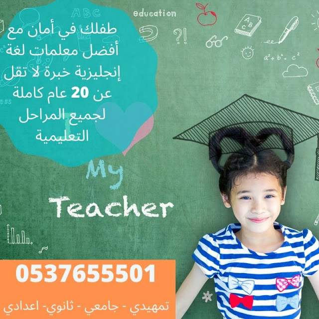معلمة خصوصية في جميع المواد لجميع المراحل بكل أنحاء الرياض ولدينا ايضا نخبة من أفضل المعلمين والمعلمات للتدريس خصوصي بأفضل الأسعار للمتابعات اليومية والمراجعات من تمهيدي حتى الجامعة للمناهج الخاصة بالمدارس أهلي وحكومي وإنترناشيونال والجامعات في كافة المواد